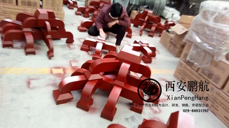 read more西安酒店铝合金门头改造工程中,选用了西安鹏航生产的金属产品,包含铝合金仿古屋面瓦、铝合金檐椽等铝构件···